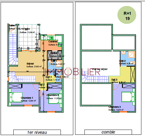 Appartement T4 de 84.53m² habitables avec terrasse de 11.04m² , situé au 1er étage du Bât A.